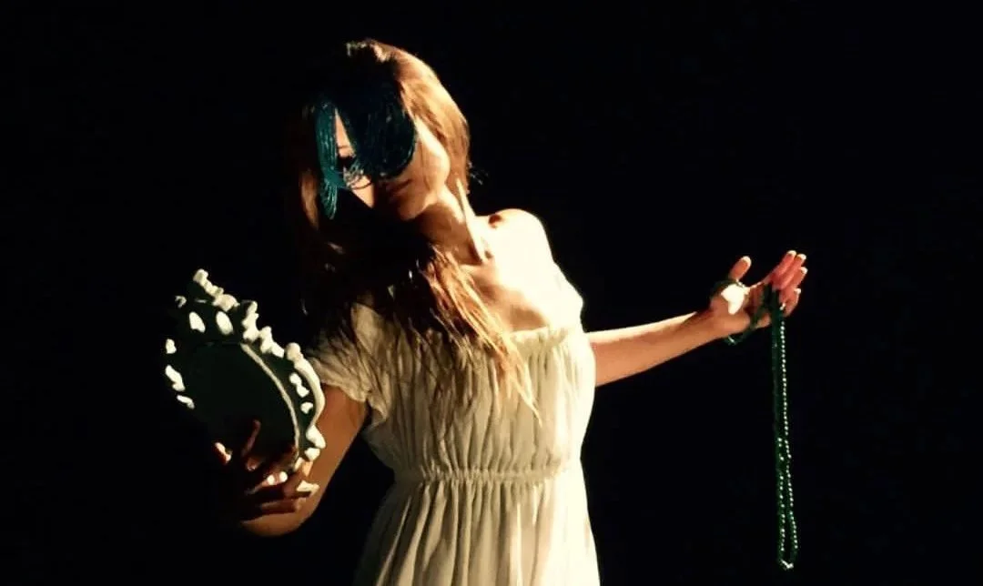 Cenografia da performance multimídia Lícia na Orla das Maravilhas, de Carolina Berger, apresentada no Festival Curta-SE (Aracaju, 2014). A performer Carolina Berger cria o heterônimo literário Madame C.Bécamier e a personagem alterego Lícia D.B. que celebram com o público presente o ritual multimídia para falar de amor, o poder e liberdade. Com energia criada a partir de uma homenagem às mitológicas divindades da religiosidade afrobrasileira Oxum e Iemanjá, a tríade feminina faz vibrar o universo das águas profundas e vastas das voluptuosas cachoeiras para combater toda forma de preconceito, agressão e padronização da feminilidade.