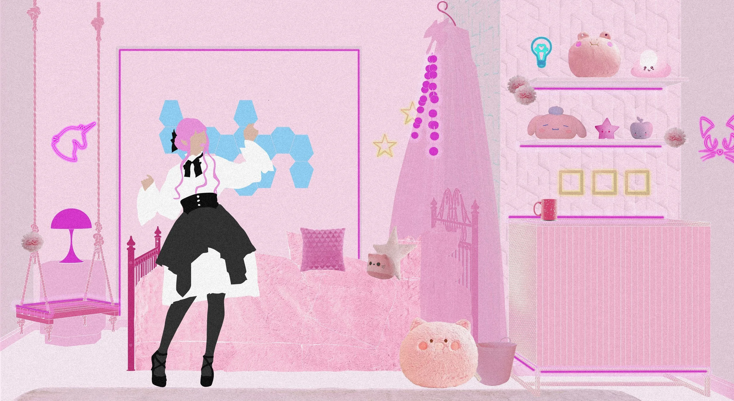 Diseño de producción del cortometraje Satélite, de Fernando Chicolet y Cainan Baladez (2023). Ananda se transforma de acuerdo con su público. Una profesora de yoga, una joven cosplayer otaku, un exjugador profesional de juegos electrónicos. Sus streams atraen, por su personalidad, a jóvenes aficionados por su personalidad. En postproducción.