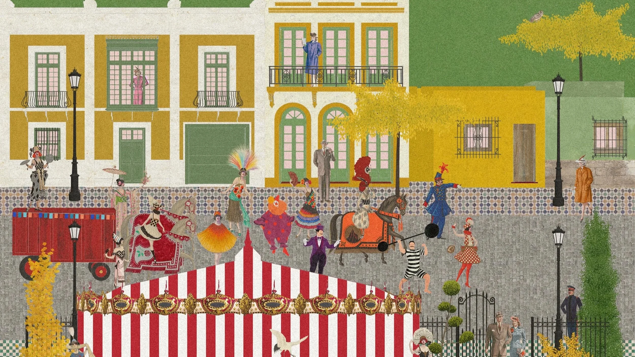 Collage y layouts creados para la representación de espacios y mundos ficcionados, a través de la utilización de técnicas de maquetado y collage digital; teniendo como punto de partida vivencias reales, textos, guiones, pinturas, fotografías, etc.